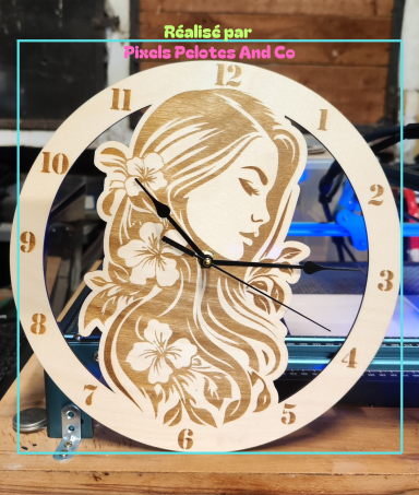 La création d'une horloge avec découpe est à partir de 30€ en cas de personnalisation. Épaisseur 3mm.